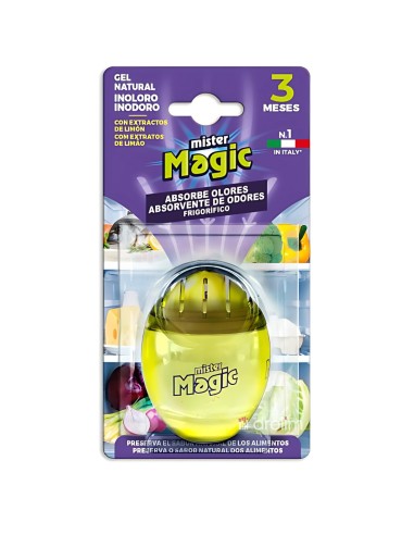 Mantén tu frigorífico libre de malos olores y tus alimentos frescos con el Huevo Absorbeolores Frigorífico Mister Magic Limón. Este práctico y discreto absorbeolores, con forma de huevo y un fresco aroma a limón, está diseñado para neutralizar eficazmente cualquier olor desagradable que pueda generarse en el interior de tu nevera. Ayuda a que los alimentos conserven su sabor original sin que se mezclen con otros aromas.