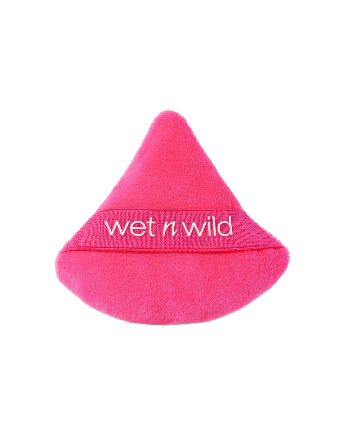 Esponja borla de polvo Wet n Wild. Suave, ligera y precisa, perfecta para aplicar polvos sueltos o compactos con un acabado uniforme y natural.