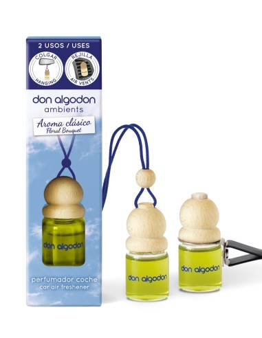 El Ambientador de Coche Don Algodón Clásico es la opción perfecta para mantener tu coche siempre fresco y libre de olores desagradables. Su fórmula innovadora absorbe los malos olores y los reemplaza por una sensación limpia y agradable, gracias a sus extractos naturales.