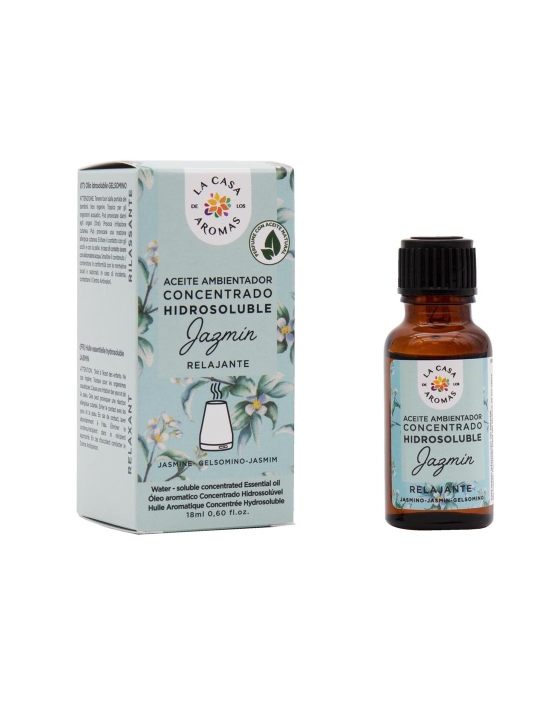 Los aceites aplicados en el humidificador purifican y aromatizan los espacios, creando un entorno agradable. Alcanzan a perfumar una superficie de hasta 30 m2 durante 5-6 horas de forma continua y necesitarás tan solo de 3 a 5 gotas dependiendo de la intensidad deseada y del tamaño de la habitación para aromatizar con el aroma escogido. El aroma del jazmín es intenso y a la vez exótico, floral, cálido, especiado y un poco frutal. Crea una variedad de sensaciones olfativas. El jazmín es un buen relajante y llena de optimismo el entorno.