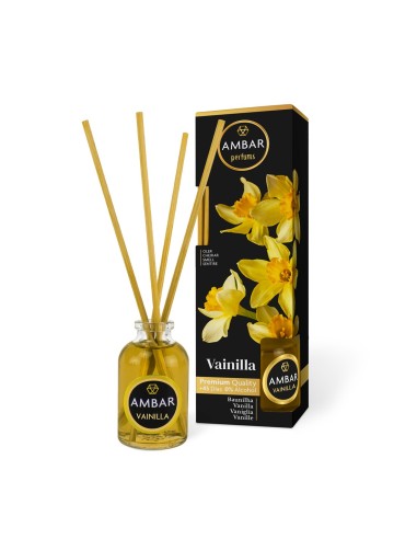 El Mikado Vainilla 30 ml de Ambar Perfums es un ambientador compacto y eficaz, perfecto para aromatizar pequeños espacios con un agradable y envolvente perfume de vainilla. Su fragancia dulce y cálida está elaborada con perfume de calidad Premium y sin alcohol, lo que permite una evaporación más controlada y duradera.