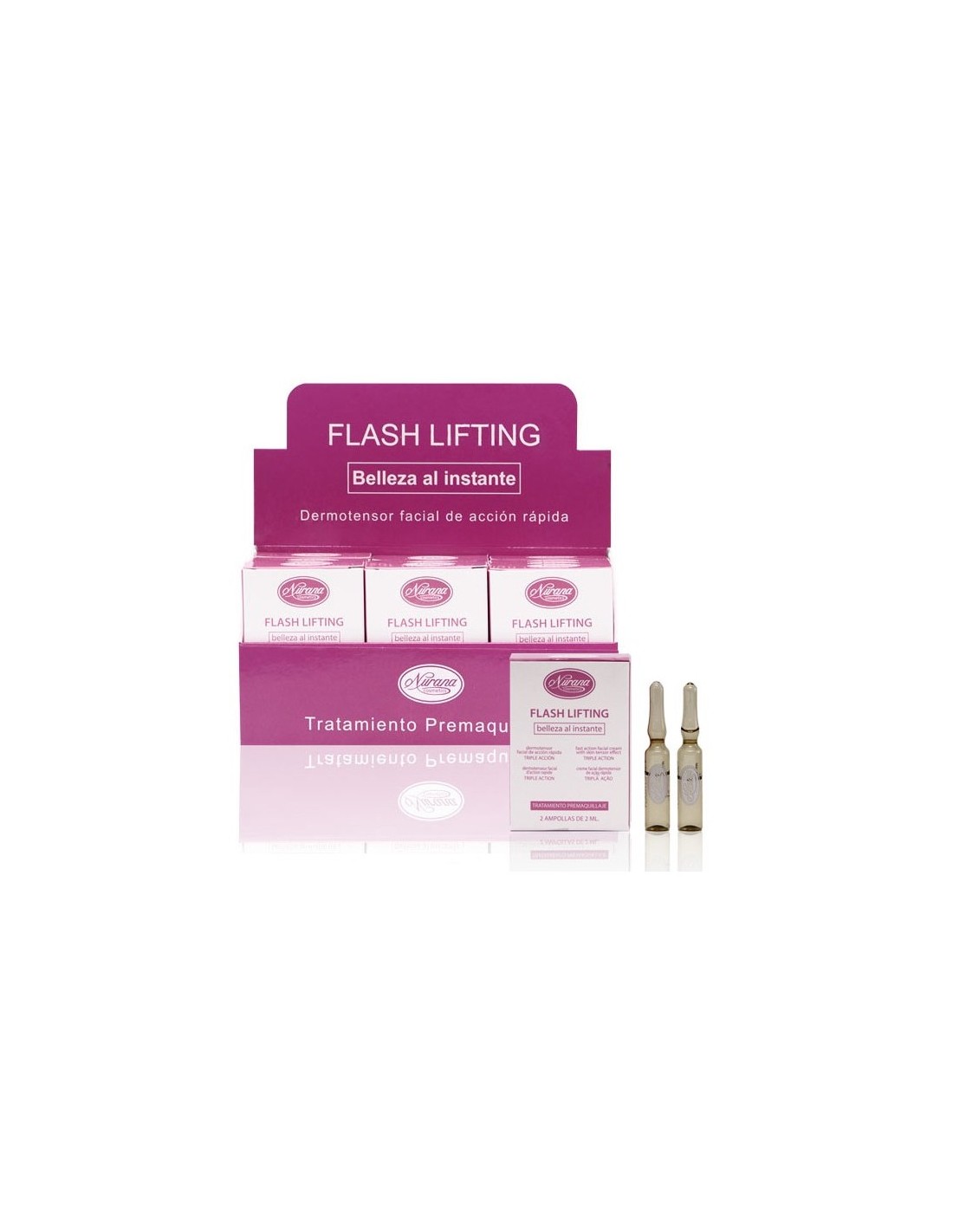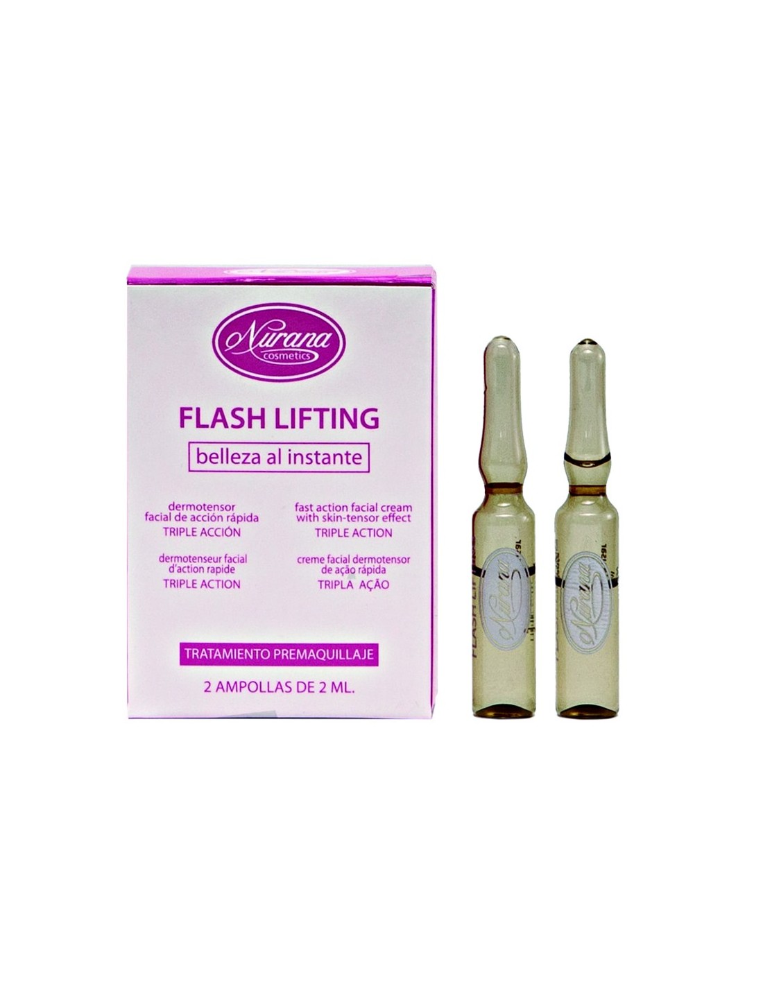 Este dermotensor facial de acción rápida de Nurana consiste en una solución acuosa gelificada apta para todo tipo de pieles que consigue alisar de inmediato la piel y propiciar la relajación de los tejidos cutáneos. Cuenta con una triple acción que logra hidratar y nutrir devolviendo el brillo y difuminando arrugas y huellas de fatiga, reafirmar y alisar los tejidos para obtener una piel tersa y suave y, por último, preparar el rostro para un maquillaje radiante.
