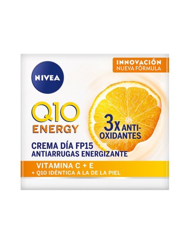 Crema facial Nivea Q10 Antiarrugas Plus Día SPF15 50 ml. Hidrata, reduce arrugas y aporta energía a la piel con protección solar.