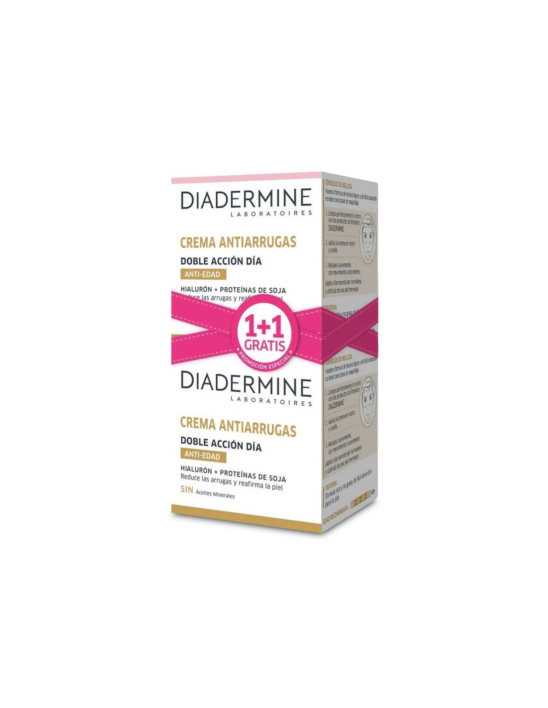 Combate los signos del envejecimiento y revitaliza tu piel cada día con el Diadermine Crema Anti-Arrugas Día Anti-Edad Duplo 2x50ml. Este pack ahorro contiene dos unidades de la eficaz crema de día anti-arrugas de Diadermine, diseñada para actuar activamente contra las arrugas y la pérdida de firmeza. Su fórmula avanzada trabaja para alisar la piel, reducir la visibilidad de las arrugas y líneas de expresión, y mejorar la elasticidad y la tonicidad del rostro.