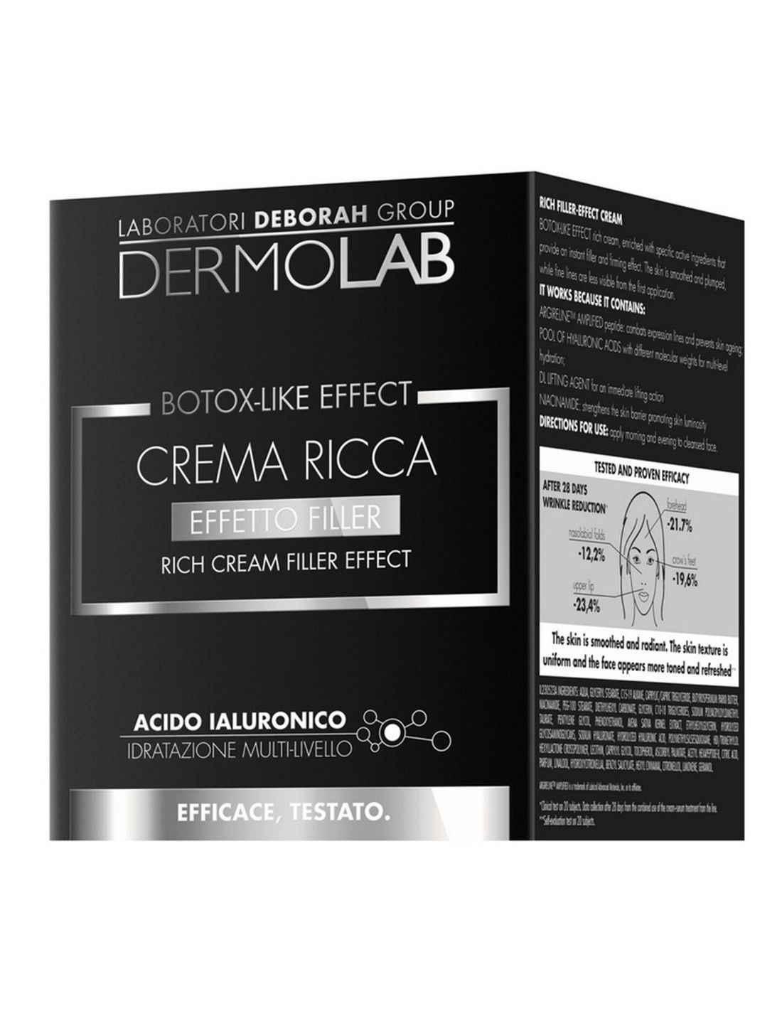 La Dermolab Crema Facial con Efecto Botox 50 ml es un tratamiento de alta eficacia que proporciona una acción rejuvenecedora similar al botox, ayudando a reducir arrugas y líneas finas en la piel. Gracias a su fórmula avanzada, esta crema de uso diario actúa profundamente sobre la piel para mejorar la firmeza y elasticidad, logrando un efecto de lifting visible y natural.