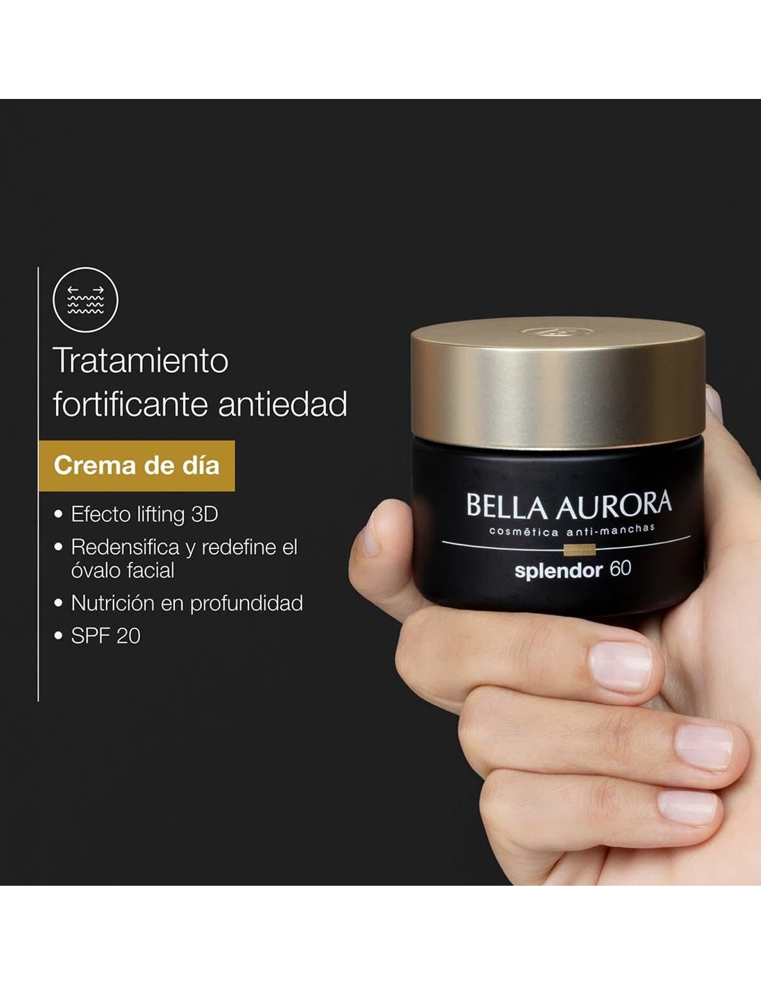 La crema antiedad de día Bella Aurora Splendor 60 es un tratamiento intensivo diseñado para la piel madura. Su fórmula avanzada ayuda a reducir la apariencia de arrugas y líneas de expresión, mientras trabaja en la atenuación de las manchas oscuras y unifica el tono de la piel. Además, su factor de protección solar SPF20 protege la piel de los daños causados por los rayos UV, ayudando a prevenir el envejecimiento prematuro.