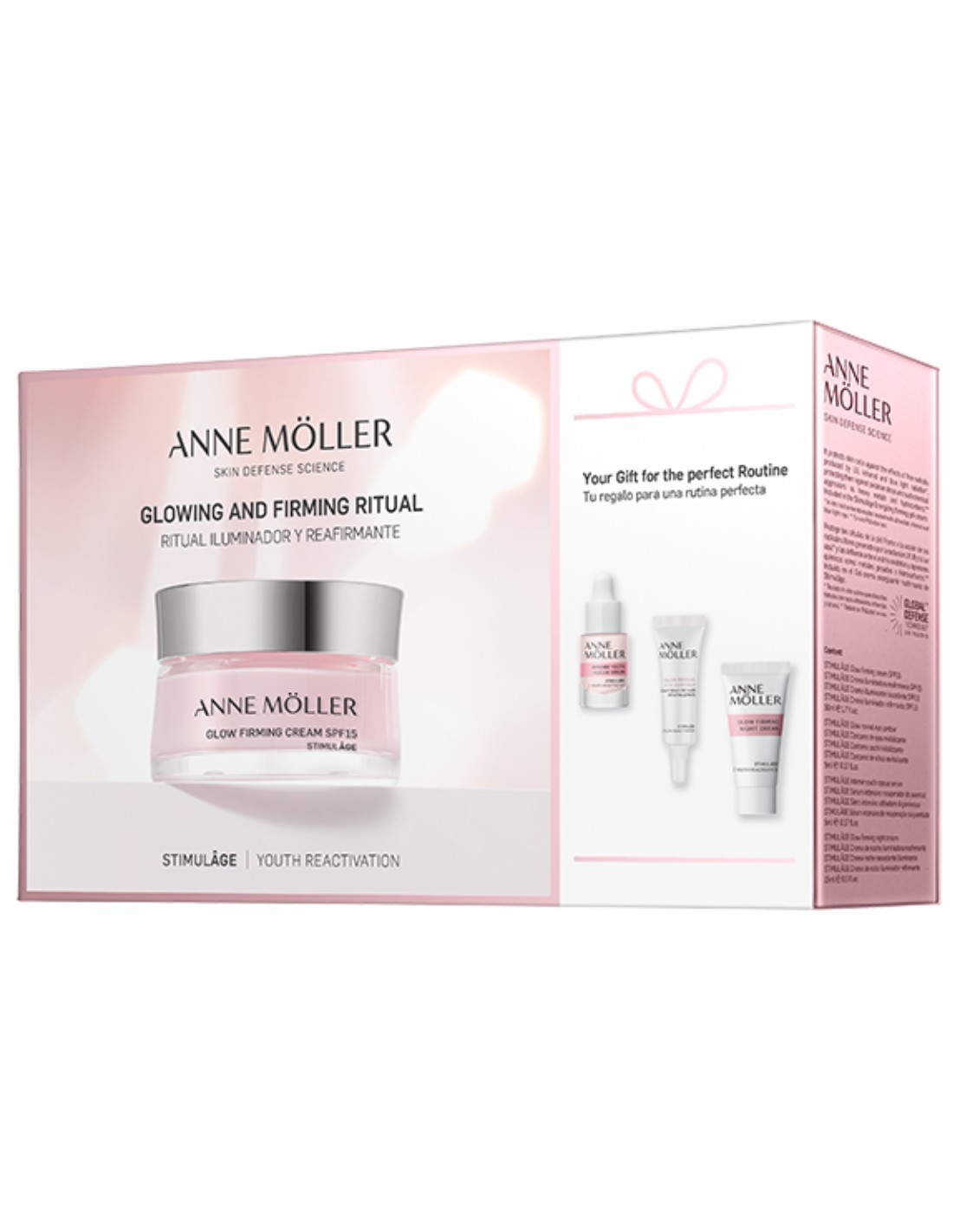 Anne Moller Stimulâge Pack Beauty Ritual es un completo tratamiento antiedad de cuatro piezas diseñado para el cuidado diario de la piel. Incluye un Sérum Celular Día y Noche que actúa para reforzar la elasticidad y firmeza, una Crema Firming spf15 Día que protege la piel y mejora su resistencia, un Contorno de Ojos específico para la delicada piel de esta zona y una Ampolla de Noche que potencia la recuperación celular mientras descansas. Este ritual está pensado para proporcionar una piel con un aspecto más revitalizado y liso, ayudando a reducir la apariencia de las arrugas y a aportar luminosidad.