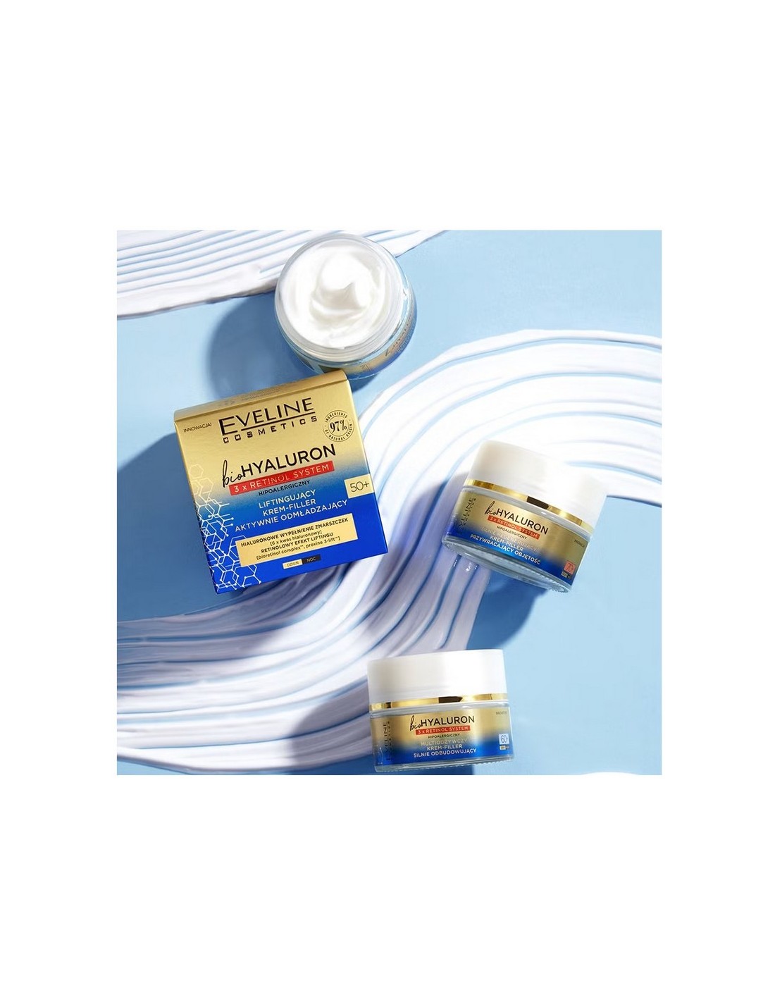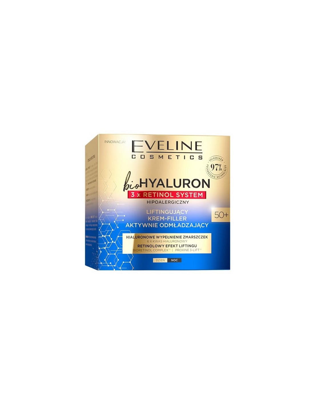 Eveline 3xRetinol System Crema Lifting Rejuvenecedora Día/Noche para pieles 50+ es un tratamiento completo para combatir los signos visibles de la edad, ofreciendo un efecto lifting y rejuvenecedor. Su fórmula avanzada con 3 tipos de retinol y activos rejuvenecedores actúa de día y de noche, ayudando a reducir las arrugas, mejorar la firmeza y la elasticidad de la piel, dejándola más suave, tersa y revitalizada.