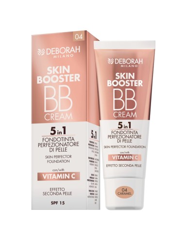 Deborah Skin Booster BB Cream 5en1 SPF15 con Vitamina C en tono 04 Caramel de Deborah Milano combina el poder del cuidado facial con la eficacia del maquillaje. Su textura ligera y cremosa se adapta al tono de la piel, proporcionando una cobertura uniforme y un efecto segunda piel con acabado luminoso.