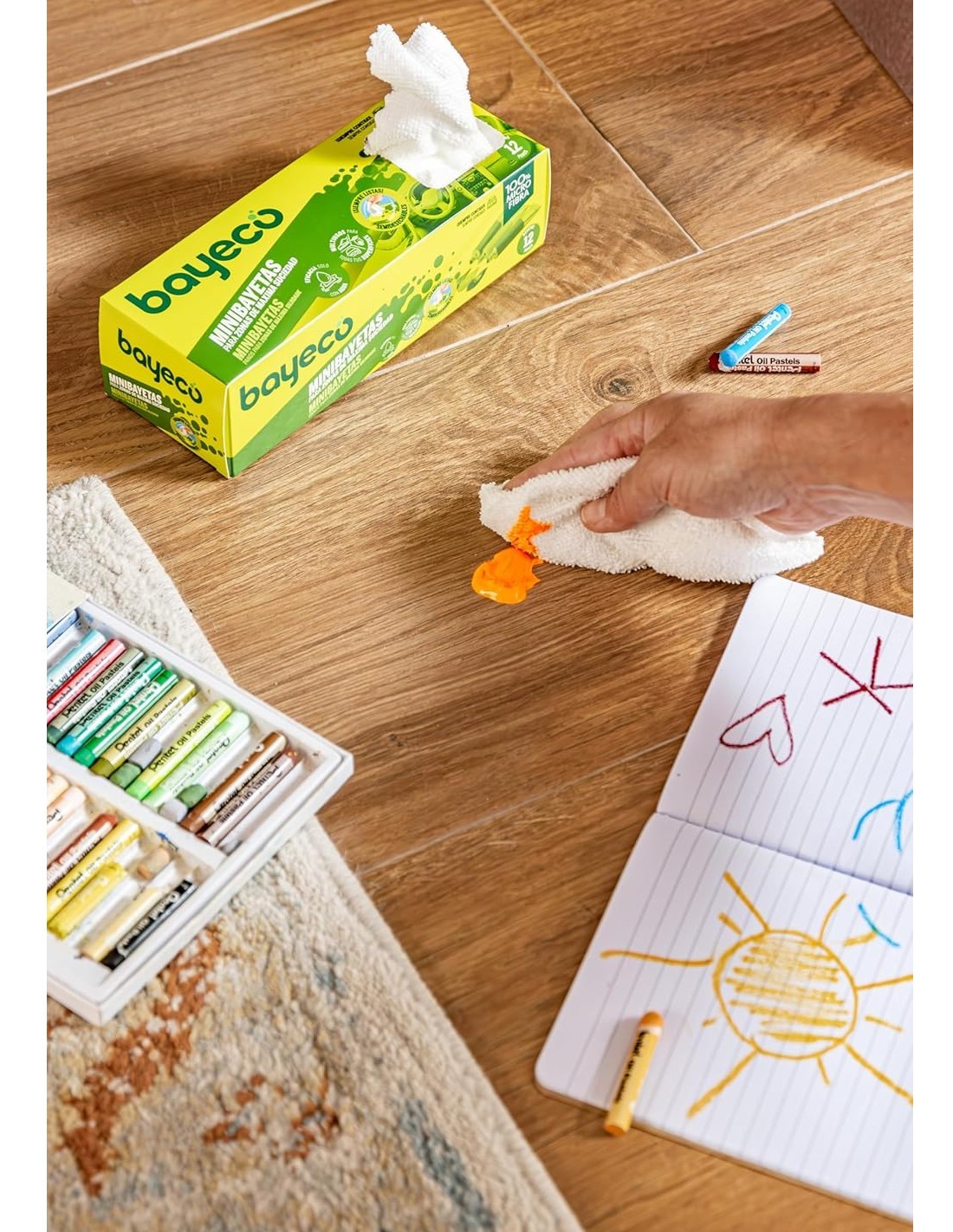 Las Bayeco Minibayetas de Microfibra vienen en un práctico set con dispensador que incluye 12 unidades de 30x30 cm. Diseñadas para una limpieza rápida y eficiente, estas minibayetas ofrecen una gran capacidad de absorción, atrapando el polvo y la suciedad sin necesidad de productos químicos.