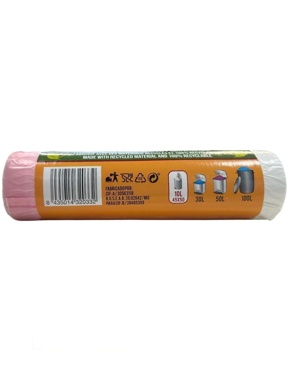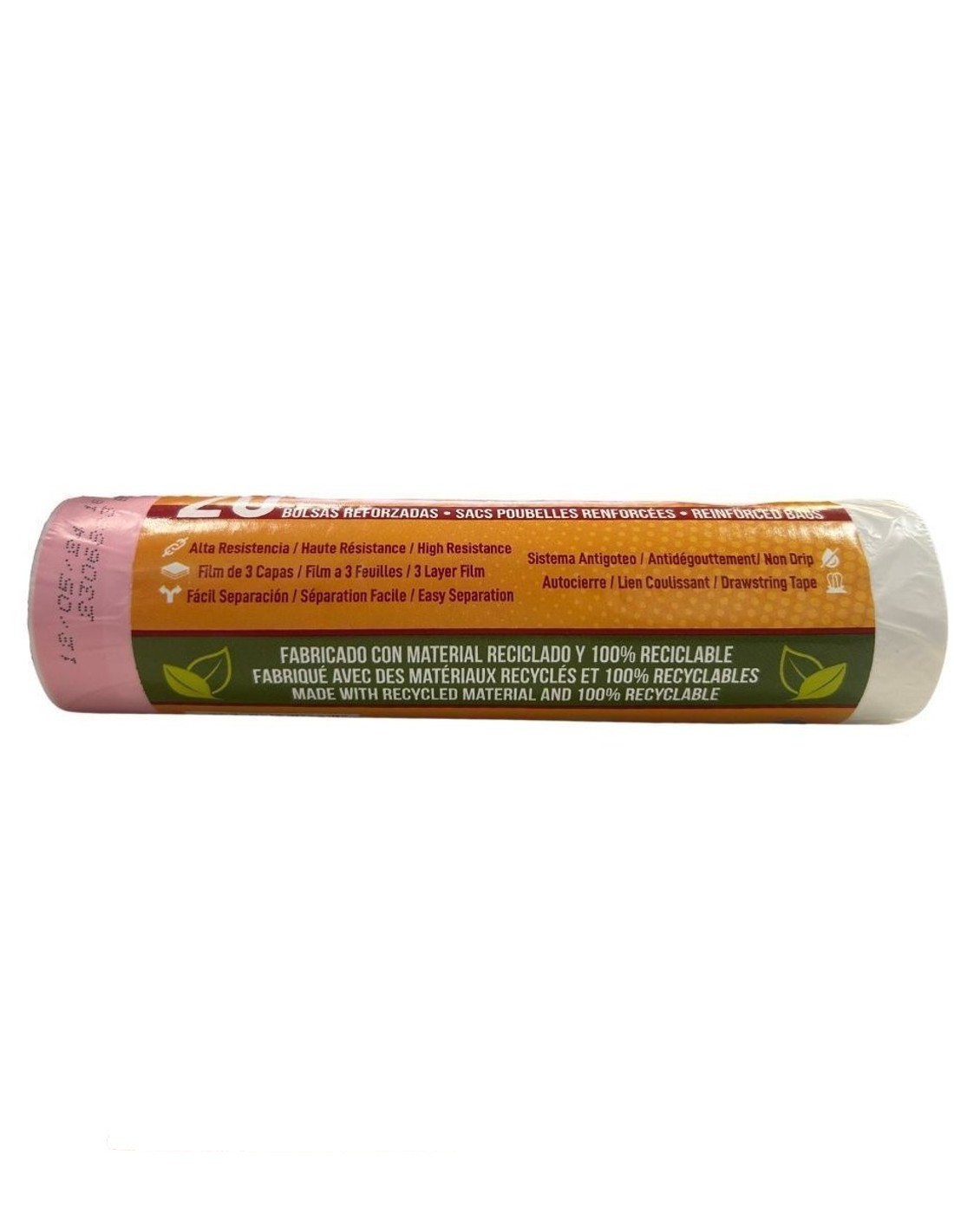Modo de uso: Coloca la bolsa en el cubo, utiliza el cierre fácil al llenarla y deposítala en el contenedor adecuado.