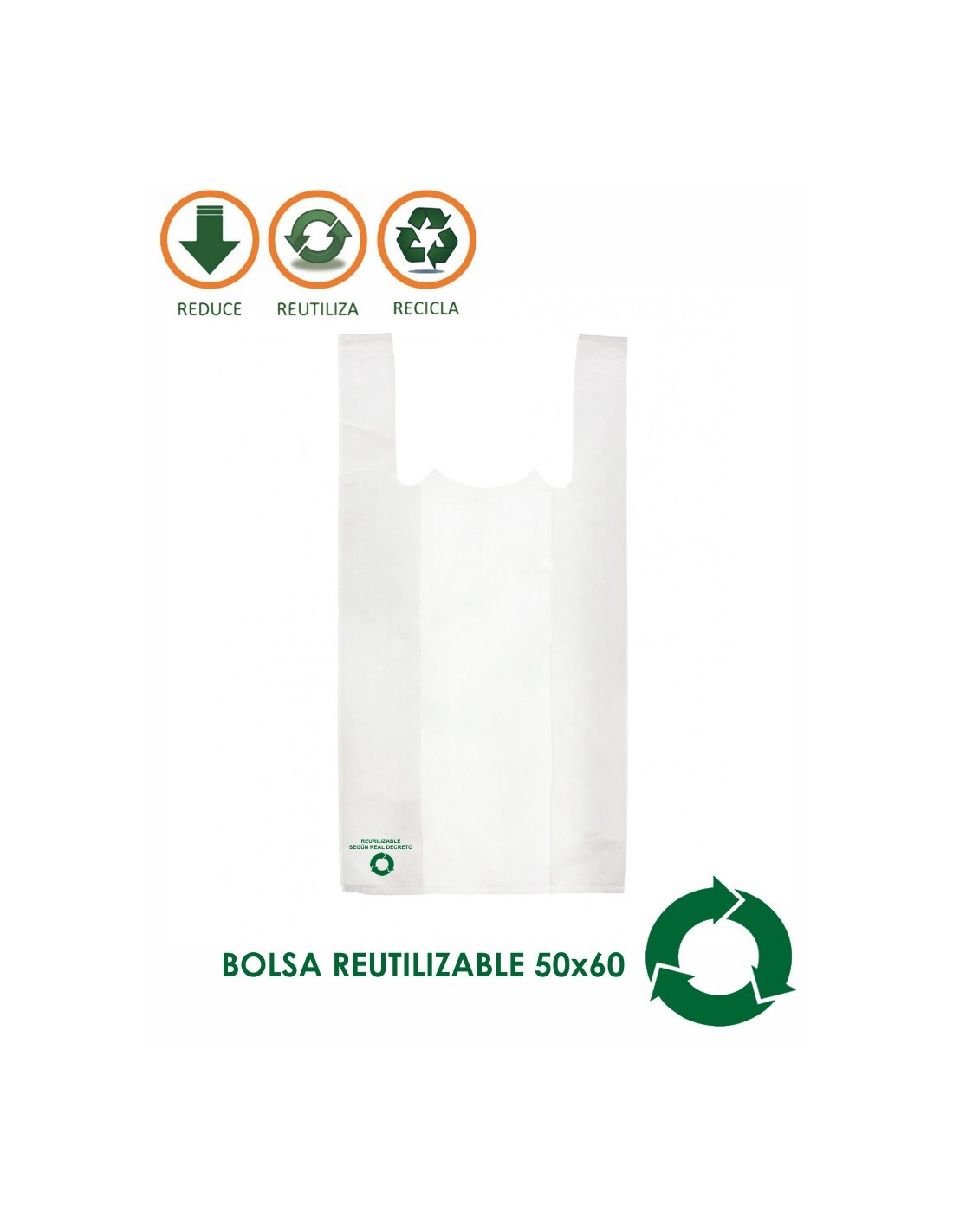 BOLSAS CAMISETA BLANCO 50X60 70% RECICLADO 30 USOS G-200