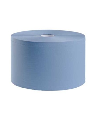 Bobina Industrial Azul Lisa 2H 23/450 MTS, una solución de limpieza de alto rendimiento diseñada para entornos profesionales y almacenes. Su papel Tisú Reciclado de doble capa (2H) asegura una excelente absorción de líquidos, grasas y aceites, siendo una herramienta indispensable para el mantenimiento de la higiene.