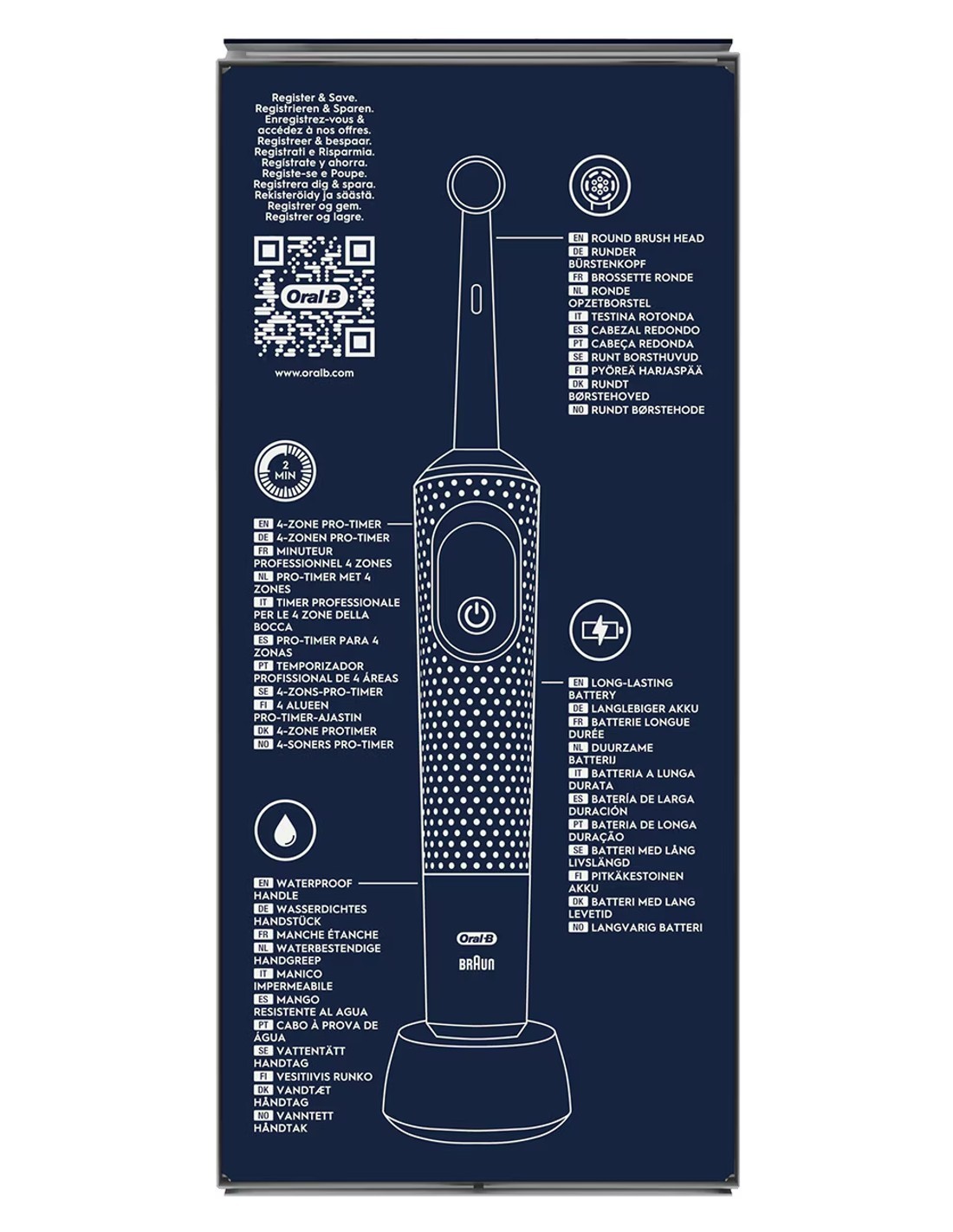 Su diseño ergonómico, batería recargable y cabezal redondeado garantizan un cepillado cómodo y eficaz. Compatible con una amplia gama de cabezales Oral-B. Ideal para el uso diario en adultos que buscan una experiencia de limpieza dental más profunda y controlada.