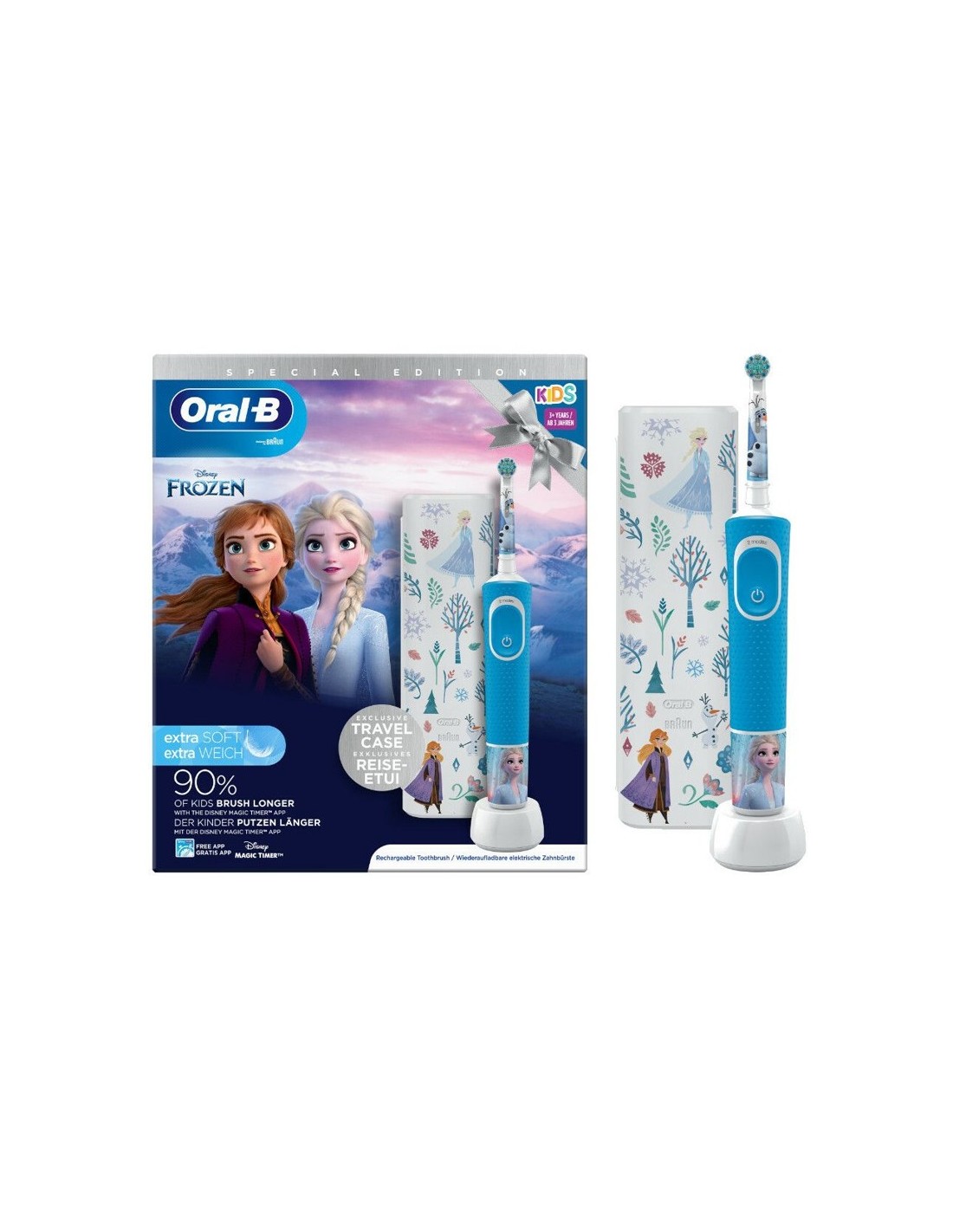 Elige el Cepillo Eléctrico Oral-B Kids Frozen y convierte el cepillado en un momento mágico. Diseñado específicamente para niños a partir de 3 años, este cepillo combina la tecnología de limpieza superior de Oral-B con la diversión de los personajes de Disney, Anna y Elsa.
