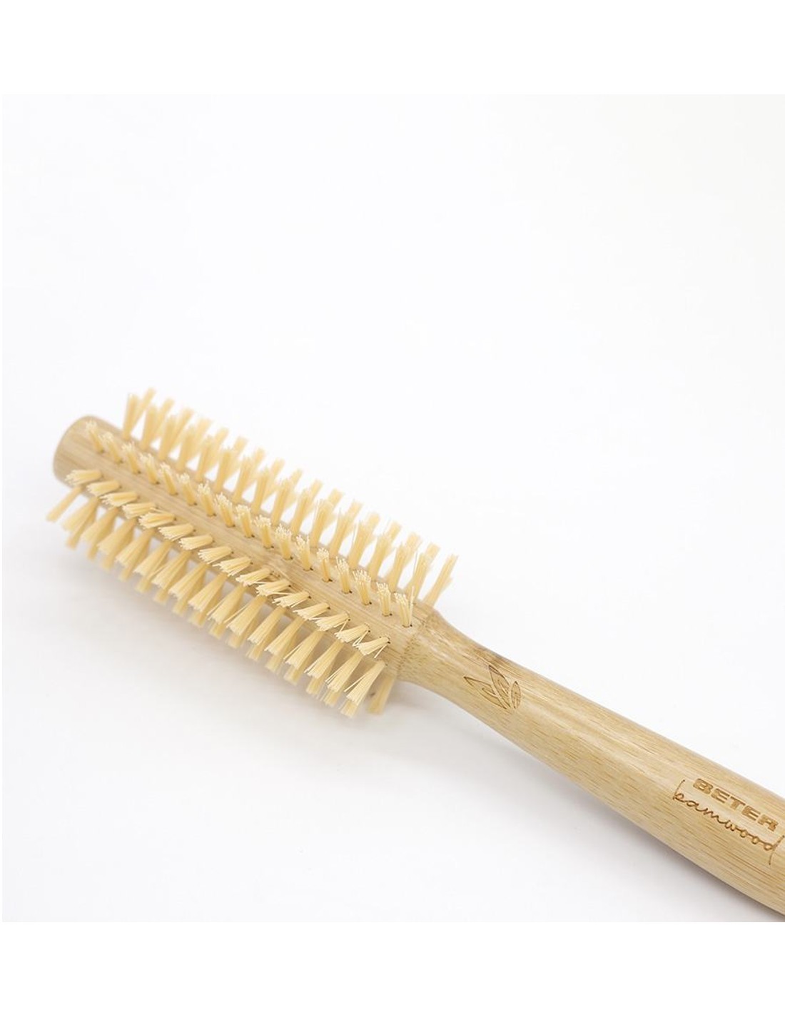 Cepillo redondo de bambú con cerdas de nylon, ideal para moldear y dar volumen al cabello.
