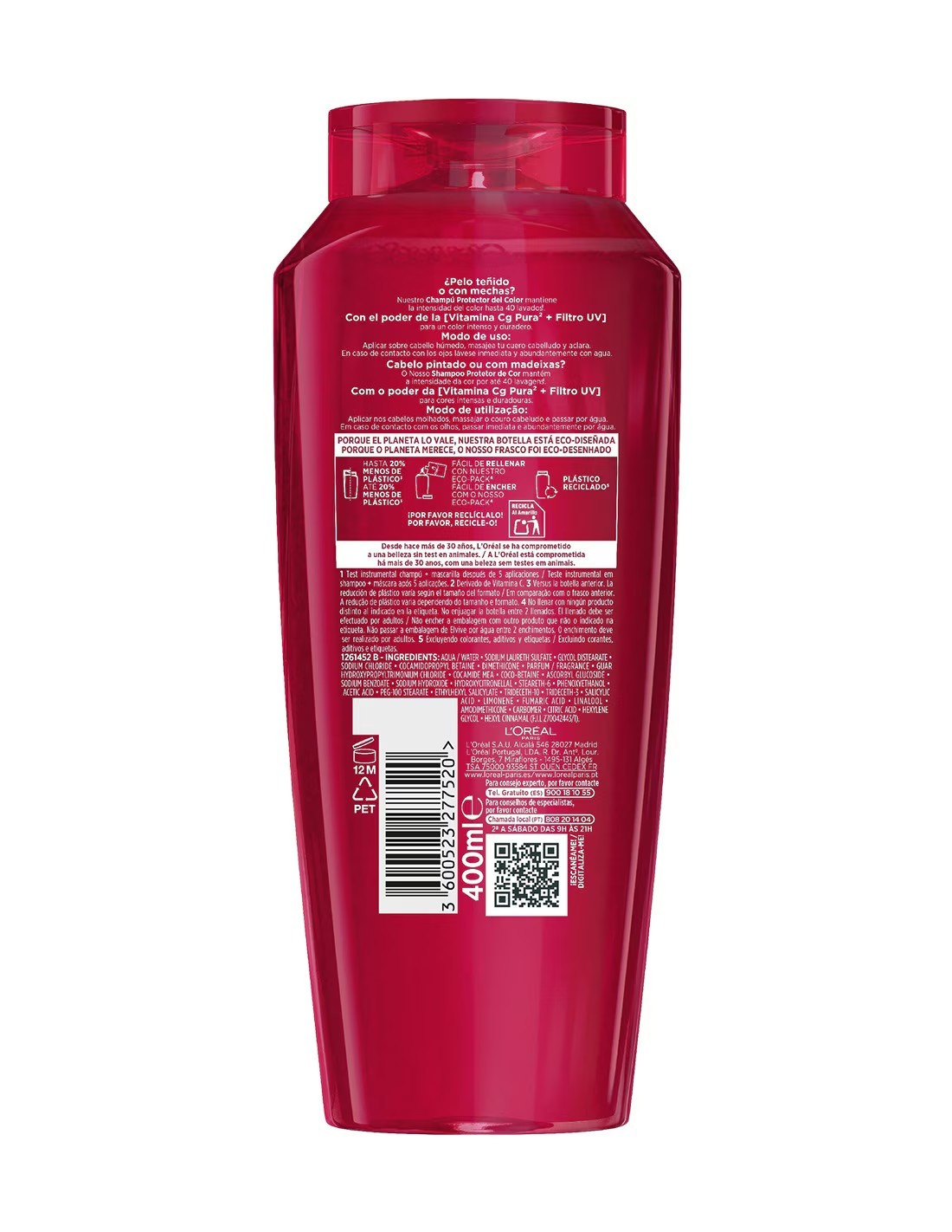 Elvive Color Vive champú para cabellos teñidos. Protege, nutre y realza el color. Formato de 400 ml ideal para uso frecuente.
