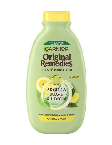 Original Remedies, champú purificante con arcilla y limón para el cabello graso. Absorbe y purifica obteniendo un cabello limpio y ligero. No contiene silicona.