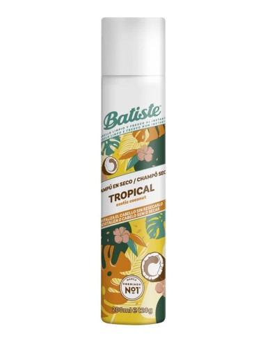 Champú en seco Batiste Tropical Coconut & Exotic. Refresca y revitaliza el cabello, dejando un aroma tropical a coco y frutas exóticas.