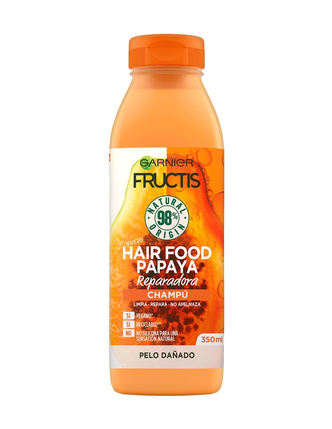 Repara tu cabello dañado y devuelve su vitalidad con el Fructis Champú Hair Food 350 ml Papaya Pelo Dañado. Este champú, con un 98% de ingredientes de origen natural, está formulado para limpiar suavemente mientras proporciona una acción reparadora intensa a tu cabello. Su exótica fragancia a papaya te envolverá en una experiencia sensorial tropical durante el lavado.