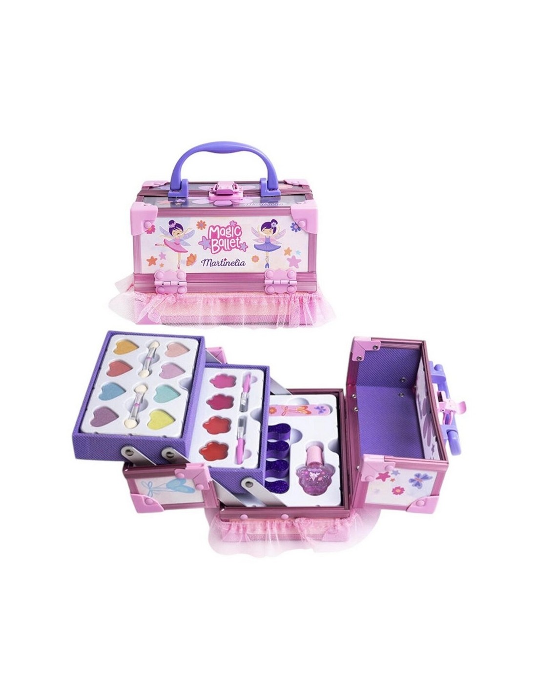 Martinelia Maleta Cosmética Magic Ballet es el sueño de toda pequeña bailarina. Esta encantadora maleta, con su diseño de hadas y bailarinas, y su detalle de tul rosa en la base, es perfecta para guardar y llevar sus cosméticos favoritos.