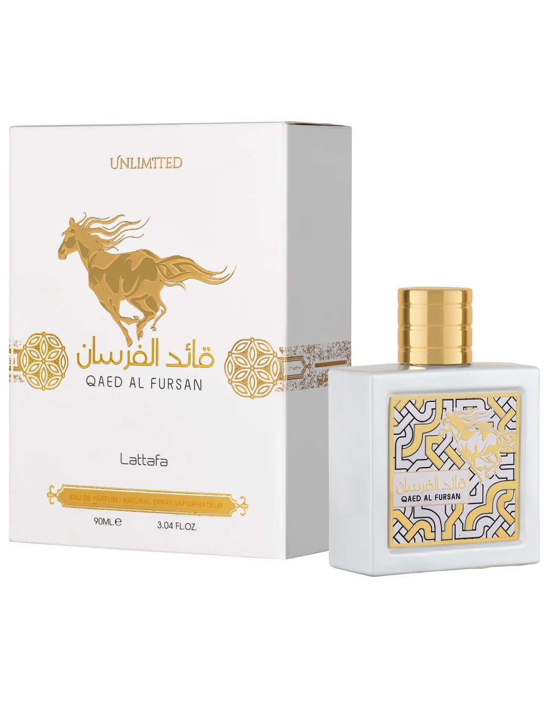 Déjate sorprender por el Lattafa Qaed Al Fursan Unlimited, un Eau de Parfum que te transporta a un paraíso olfativo exótico y vibrante. Este perfume árabe, presentado en un elegante frasco blanco y dorado, es una joya aromática unisex ideal para quienes buscan una fragancia diferente, alegre y con gran proyección.