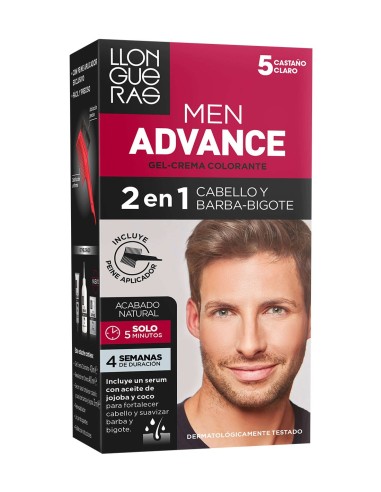 Llongueras Men Tinte Capilar en el tono Castaño Claro 5 es una solución de coloración masculina diseñada para cubrir las canas de forma rápida y eficaz, proporcionando un resultado natural y duradero. El tinte es fácil de aplicar y actúa en solo 5 minutos, camuflando las canas y revitalizando el color del cabello. El resultado es un look renovado y discreto, sin cambios drásticos, que se integra perfectamente con el color natural del cabello.