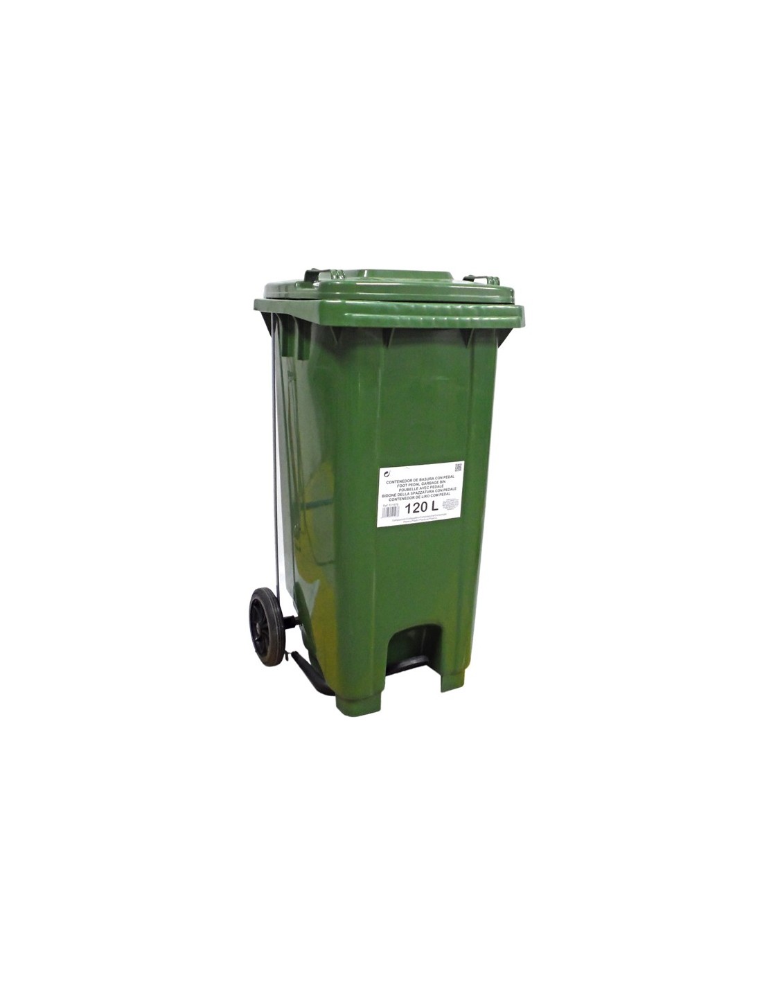 CONTENEDOR 120 LTS. VERDE CON TAPA PEDAL Y RUEDAS