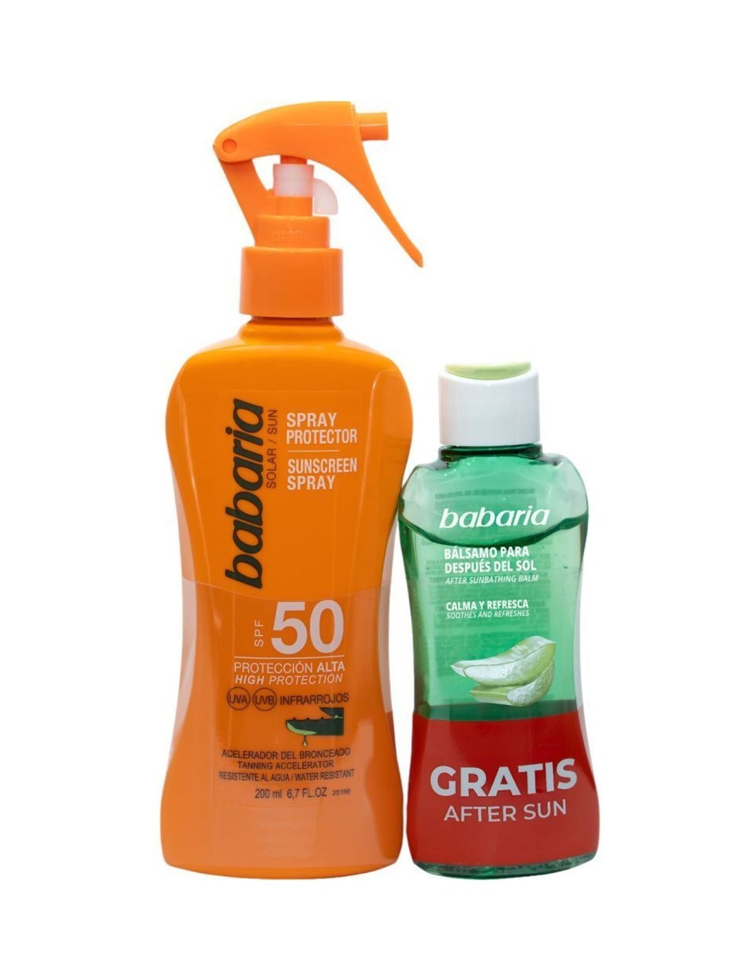 El set de protección solar de Babaria te ofrece un cuidado completo para la piel antes y después de la exposición al sol. Incluye un protector solar en formato pistola de SPF 50 que garantiza una muy alta protección contra los rayos UVA, UVB e infrarrojos, ayudando a prevenir el fotoenvejecimiento y las quemaduras solares.