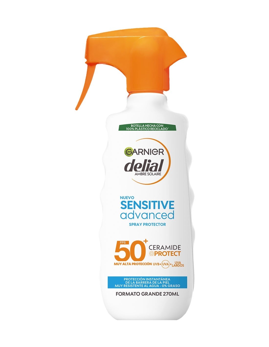Protege las pieles más sensibles al sol con el Delial Solar Pistola Protector Sensitive SPF50+ 270 ML. Este protector solar en formato spray de pistola ofrece una protección muy alta e inmediata (SPF50+) frente a los rayos UVA y UVB. Su fórmula hipoalergénica y sin perfume ha sido desarrollada para minimizar el riesgo de alergias e irritaciones, siendo ideal para pieles claras, sensibles o con intolerancia solar.