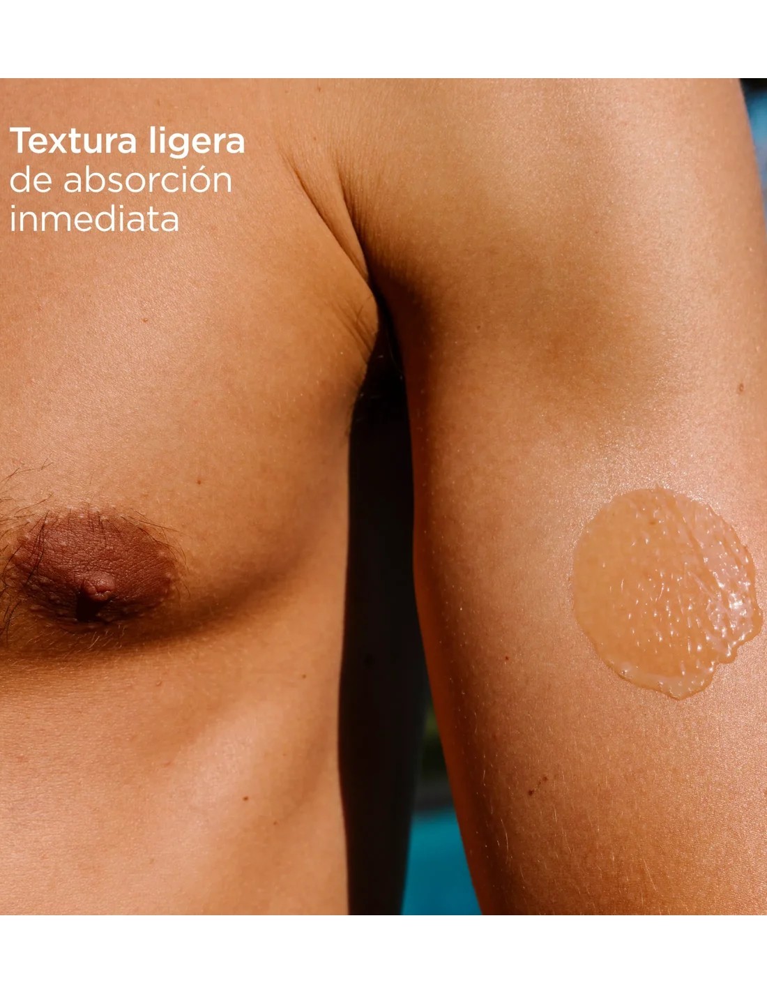 Consejo de uso: Aplica el producto generosamente sobre la piel seca o húmeda, manteniendo una distancia máxima de 5 cm, media hora antes de la exposición solar. Extiende uniformemente hasta su total absorción. Reaplicar cada 2 horas o después de transpirar, nadar o secarse con la toalla. Este es un fotoprotector corporal; se recomienda usar productos específicos para el rostro.