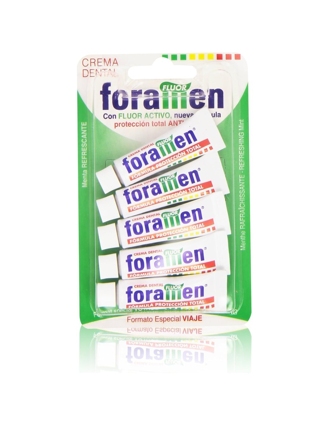 El Set de 5 Tubos Crema Dental Viaje Foramen es la solución ideal para quienes buscan comodidad sin renunciar a una higiene bucal completa. Este práctico pack incluye 5 tubos de 20 ml cada uno, un tamaño perfecto para llevar en el neceser, el bolso o el equipaje de mano sin ocupar apenas espacio. Su fórmula, con un refrescante sabor a menta, ayuda a proteger las encías y a prevenir la caries, dejando una sensación de limpieza duradera.