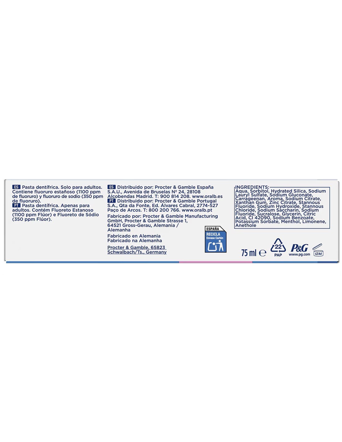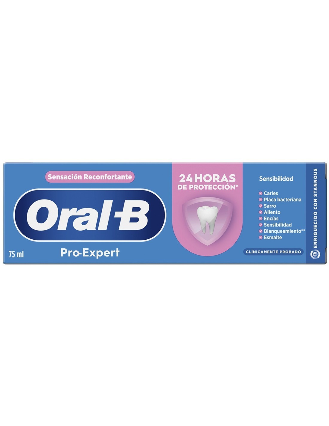 Oral-B Pro-Expert Sensibilidad y Blanqueante está diseñada para cuidar tu salud bucal de forma completa. Este dentífrico no solo ayuda a aliviar la sensibilidad dental, sino que también contribuye a recuperar el blanco natural de tus dientes, eliminando las manchas superficiales.