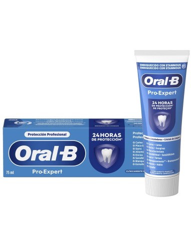 Oral-B Pro-Expert Profesional ofrece una protección completa para toda tu boca. Con una formulación avanzada, esta pasta ayuda a combatir las caries, la placa, los problemas de encías y el sarro, mientras que también protege contra la erosión del esmalte.