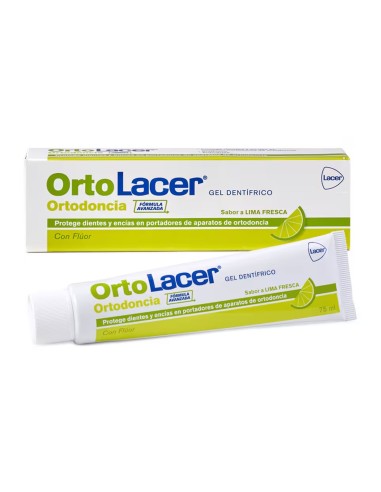 Lacer Gel Dental Ortolacer Lima 75ml. Protección completa para usuarios de ortodoncia. Reduce placa y fortalece encías.