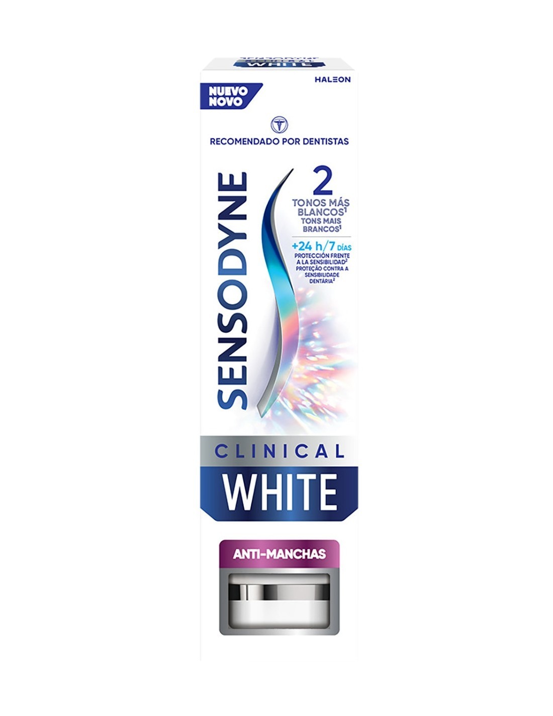 Pasta dental Sensodyne Clinical White con acción antimanchas. Cuidado y protección para dientes sensibles. Envase de 75 ml.