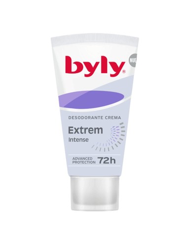 BYLY Desodorante Crema Extrem Intense te ofrece la tranquilidad de una protección avanzada y duradera. Este desodorante en crema ha sido diseñado con una fórmula innovadora que incorpora el doble de activos desodorantes para garantizar una eficacia intensa contra el sudor y el mal olor hasta 72 horas.