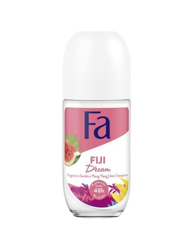 Fa Roll-On Fiji Dream 50 ml protege 48 h con un exótico aroma a sandía y ylang-ylang. Frescura tropical diaria para pieles femeninas y delicadas.