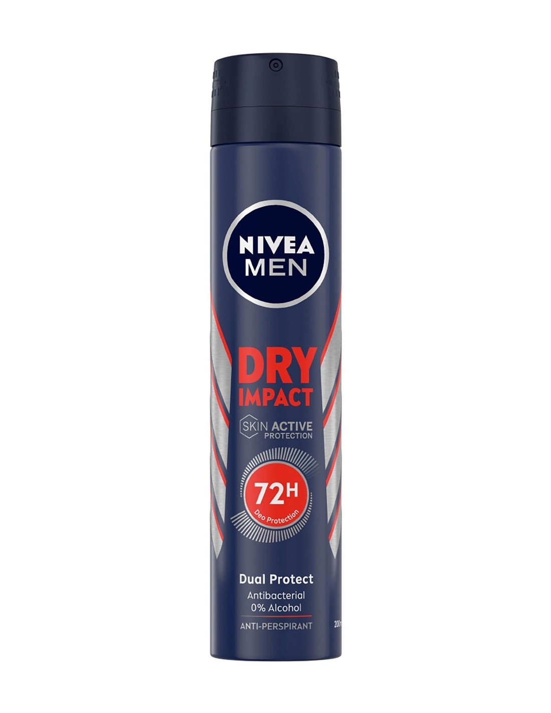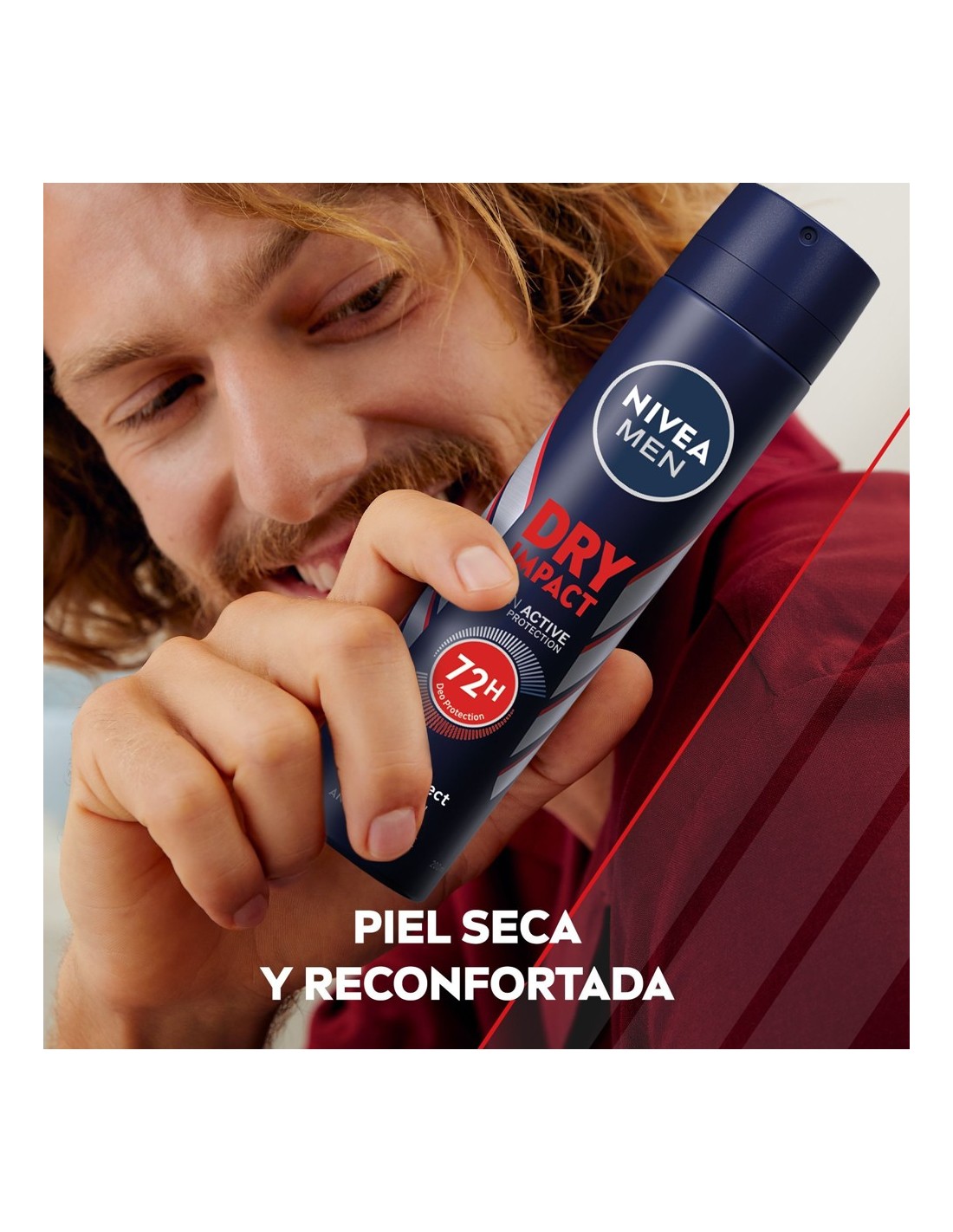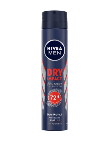 Desodorante en spray Nivea Men Dry Impact 200ml. Protección contra el sudor y el mal olor durante 72 horas.