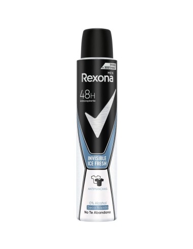 Desodorante en spray Rexona Men Invisible Ice Fresh 48H. Protección duradera sin manchas en la ropa.