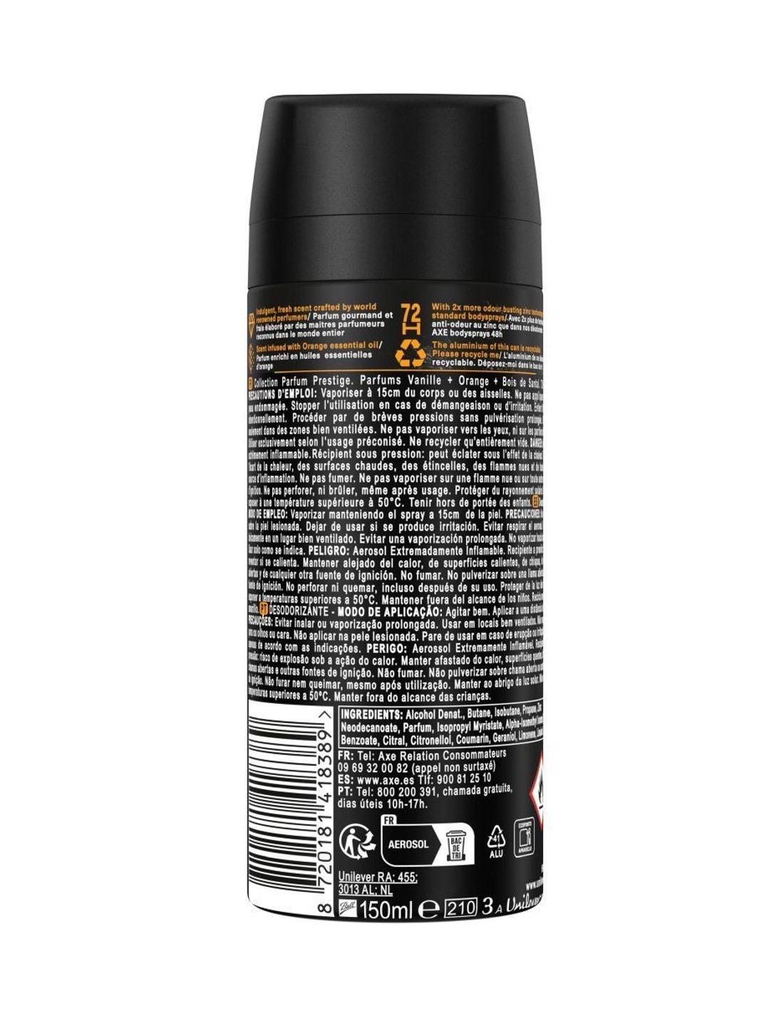 Axe Desodorante Spray 150ml Vainilla Black. Fragancia dulce y sofisticada para 48h de frescor.