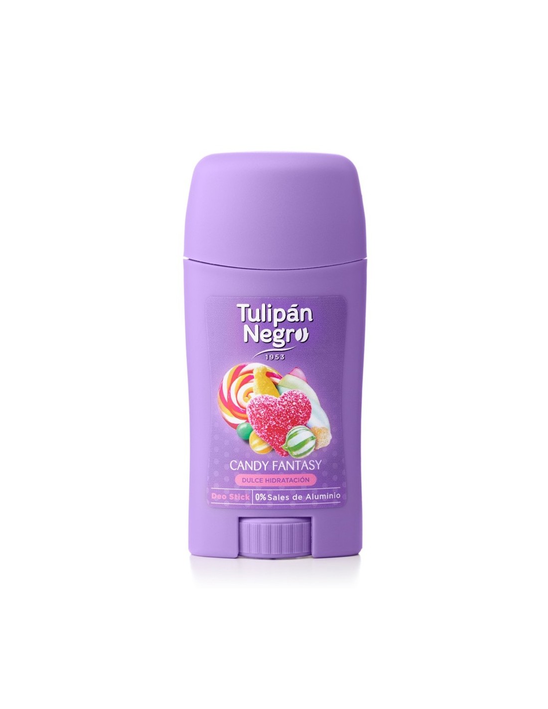 Desodorante Tulipán Negro en Stick Candy Fantasy 50 ml, para un sudor controlado durante todo el día. Proporciona una dulce hidratación y protege las axilas con una deliciosa fragancia de larga duración que nos libera de olores desagradables a la vez que cuida nuestra piel. Regala a la dermis una dulce e intensa protección durante todo el día.