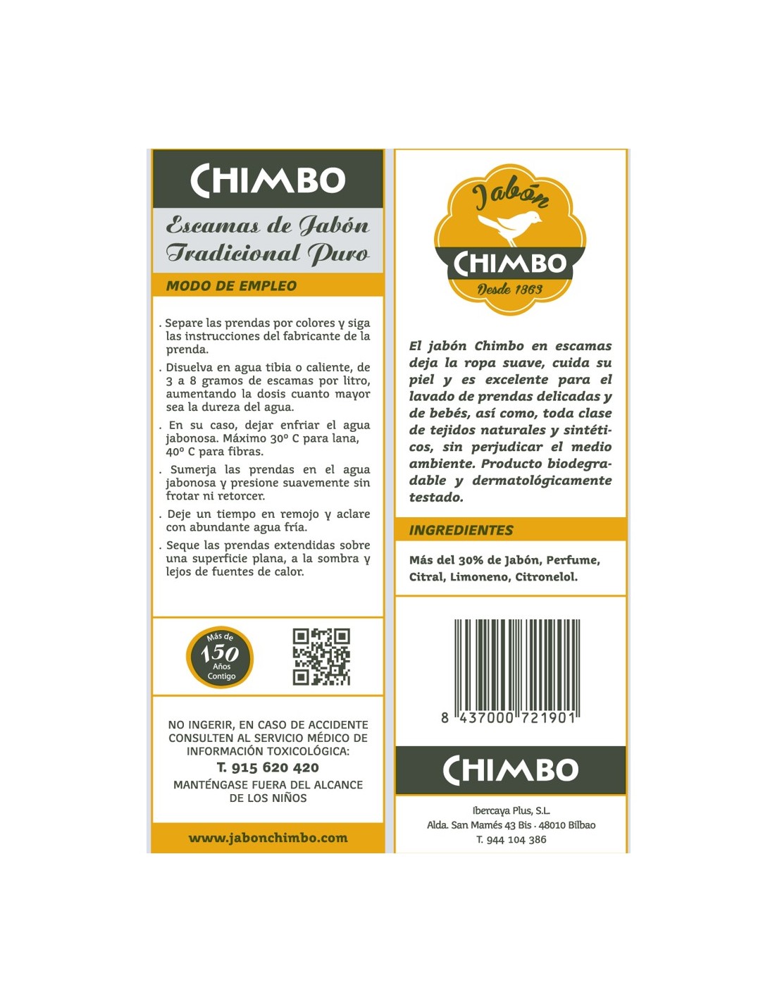 CHIMBO ESCAMAS DE JABON PURO 500 GRS.