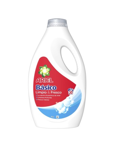 El detergente líquido Ariel Básico está pensado para quienes buscan una limpieza eficaz al mejor precio. Su fórmula penetra en profundidad para eliminar las manchas más difíciles desde el primer lavado, incluso en agua fría. Ideal para el uso diario, ofrece una frescura duradera en la ropa sin dañar los tejidos.
