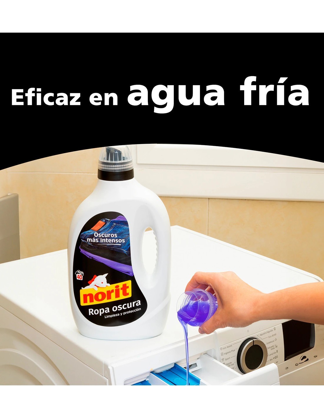 Norit Detergente Ropa Oscura 28 Dosis (1500 ml) está especialmente formulado para cuidar las prendas oscuras y negras, ayudando a conservar la intensidad del color lavado tras lavado. Su acción suave evita que la ropa destiña y minimiza el desgaste de los tejidos, alargando la vida útil de las prendas más delicadas.
