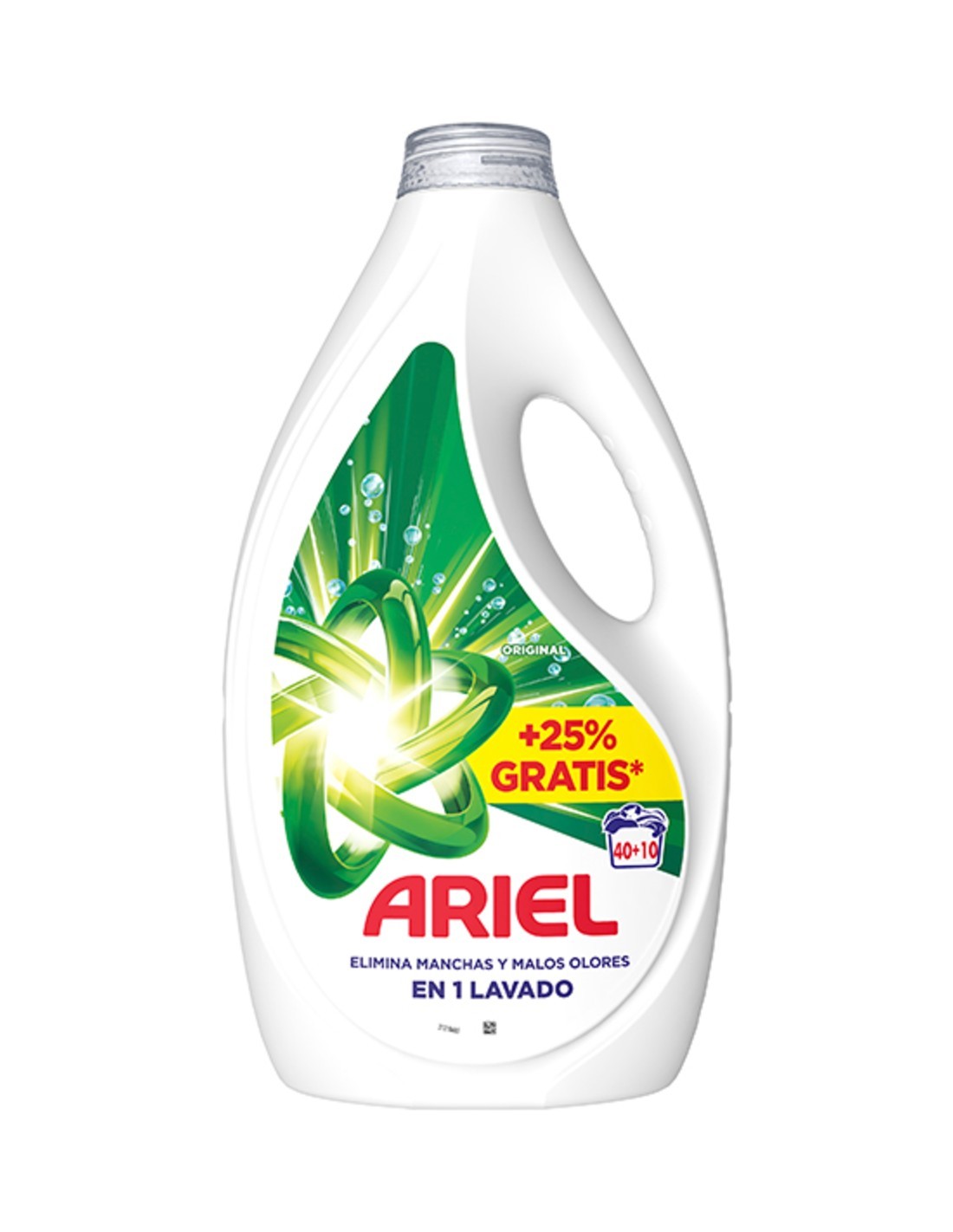 Disfruta de la eficacia imbatible de Ariel Detergente Líquido Original en cada colada. Este formato especial de 50 lavados (40+10) garantiza una limpieza superior, capaz de penetrar en las fibras para eliminar la suciedad más incrustada y las manchas difíciles.