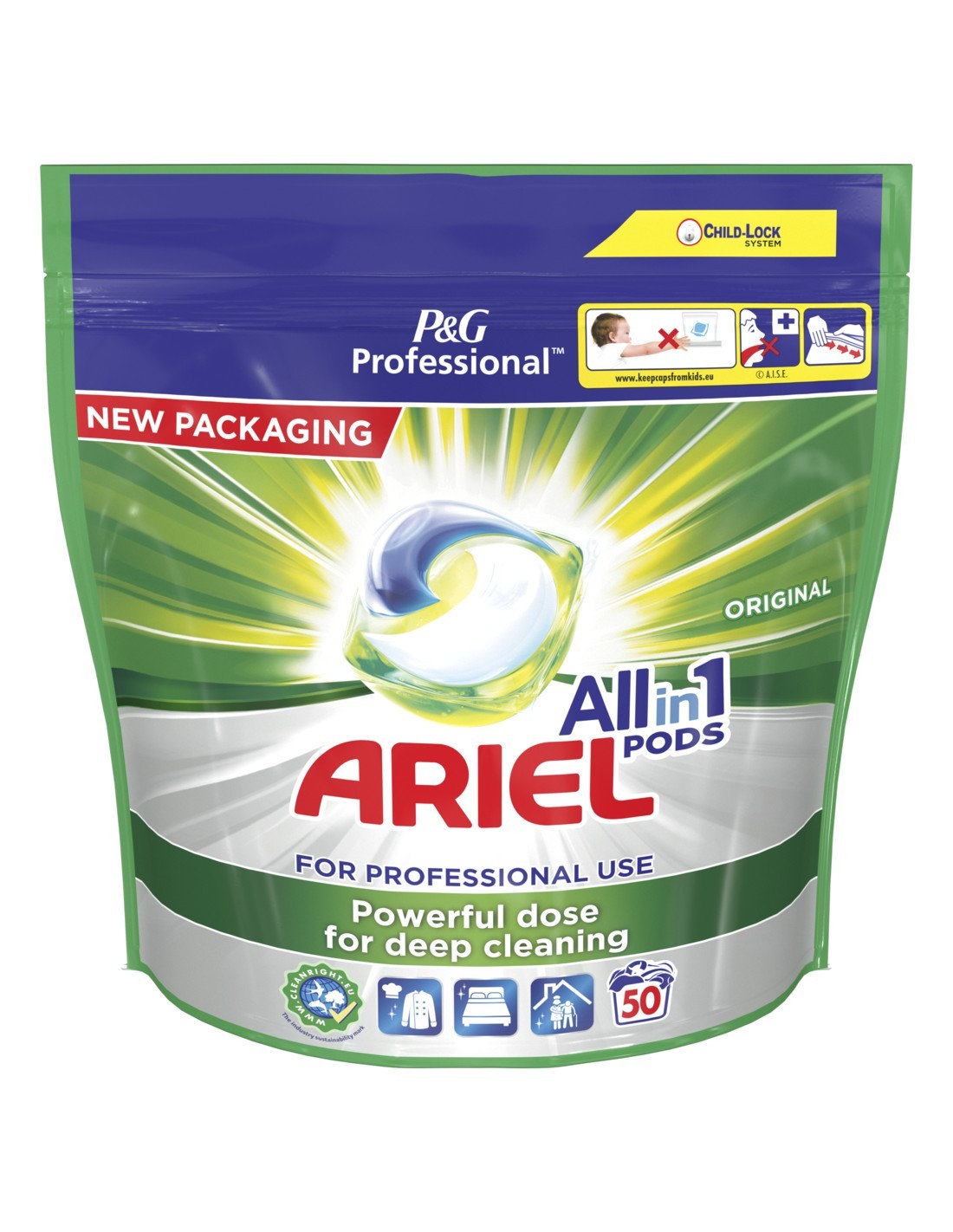 Ariel Detergente Cápsulas Lavadora Profesional ofrece una limpieza eficaz en cada lavado gracias a su triple acción que elimina manchas, reaviva los colores y deja una frescura duradera. Cada cápsula viene predosificada para evitar el desperdicio de producto y conseguir resultados óptimos incluso en ciclos cortos y con agua fría. Ideal para un uso intensivo tanto en el hogar como en entornos profesionales como lavanderías o alojamientos turísticos.