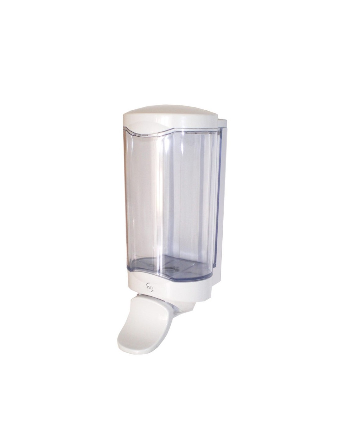 Dispensador de jabón CRYSTAL 1L con codo. Equipado con una valvula de silicona larga duración. Flujo de 1 ml de jabón por presión.