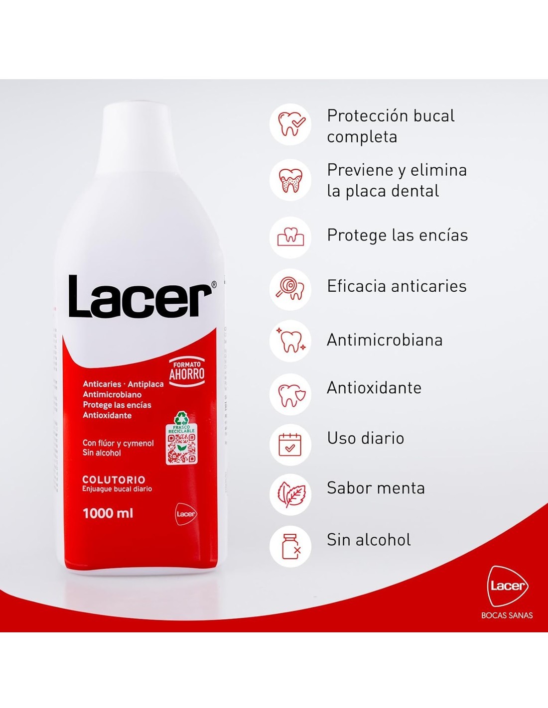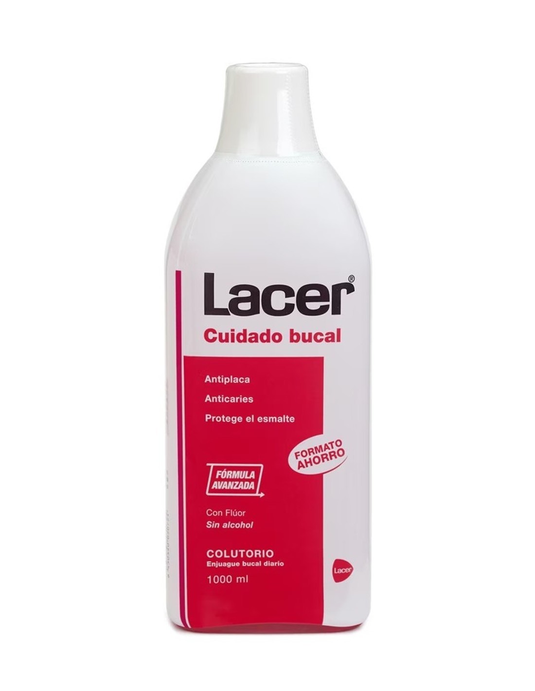 Lacer Colutorio Enjuague Bucal Diario, 1000 ml. Protege y refresca la boca diariamente, previene caries y mejora la salud bucal.