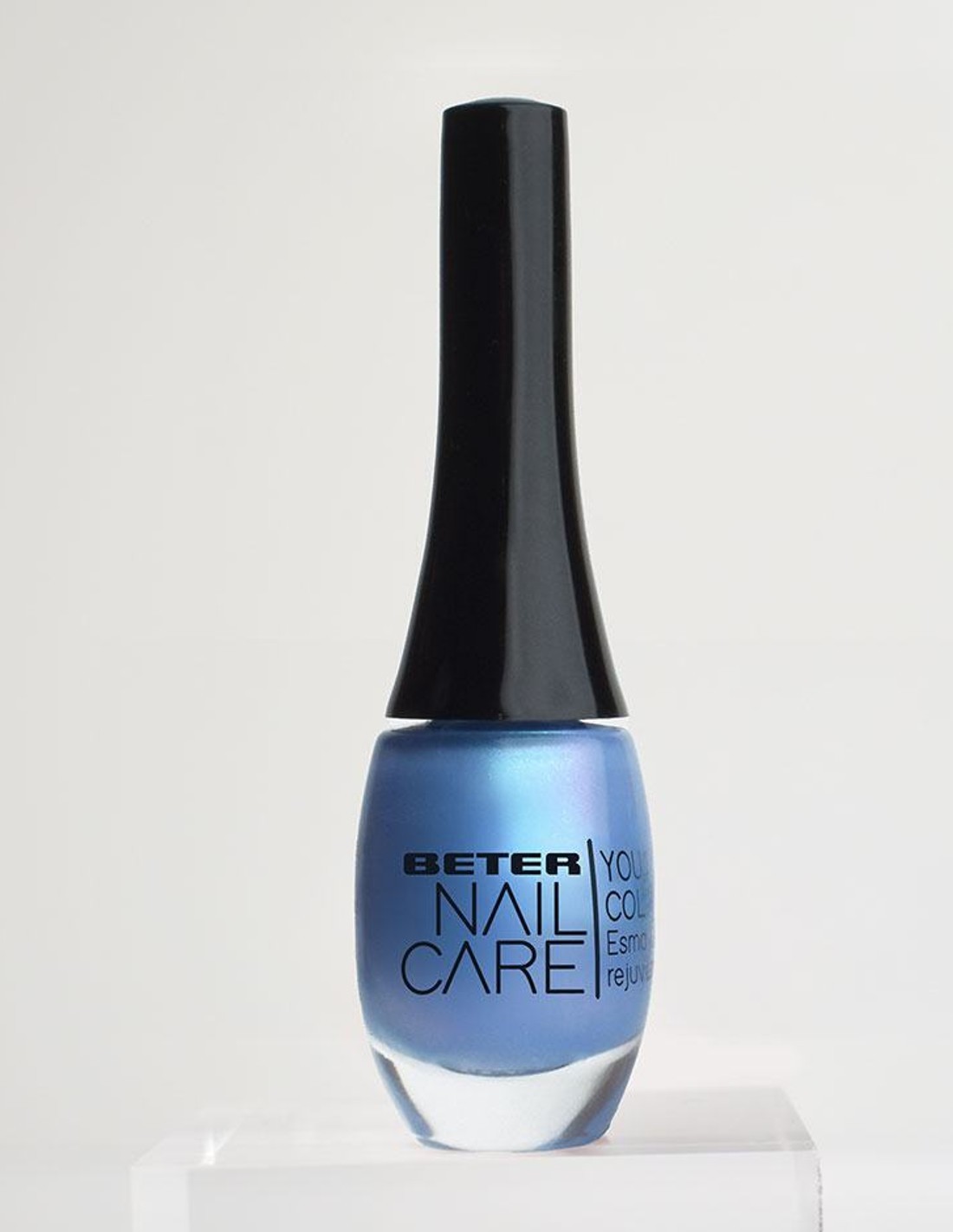 BETER Esmalte Youth Color es un esmalte de uñas vegano que combina color y tratamiento en un solo producto. Su fórmula, enriquecida con el complejo Pro-Age (Vitamina C, ácido hialurónico y plancton foto reactivo) y filtro UV, fortalece, suaviza y protege las uñas del envejecimiento, proporcionando un brillo extraordinario y una alta cobertura de larga duración.